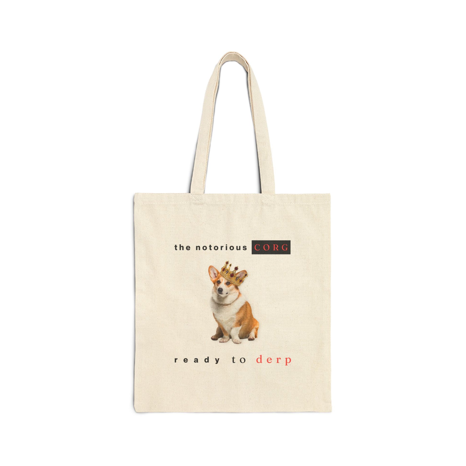 Notorious CORG...Corgi Derp 100% cute! Perfect retro vintage tote for the farmer's market, beach, or a quick errand in town. Great gift for corgi owners and dog lovers.