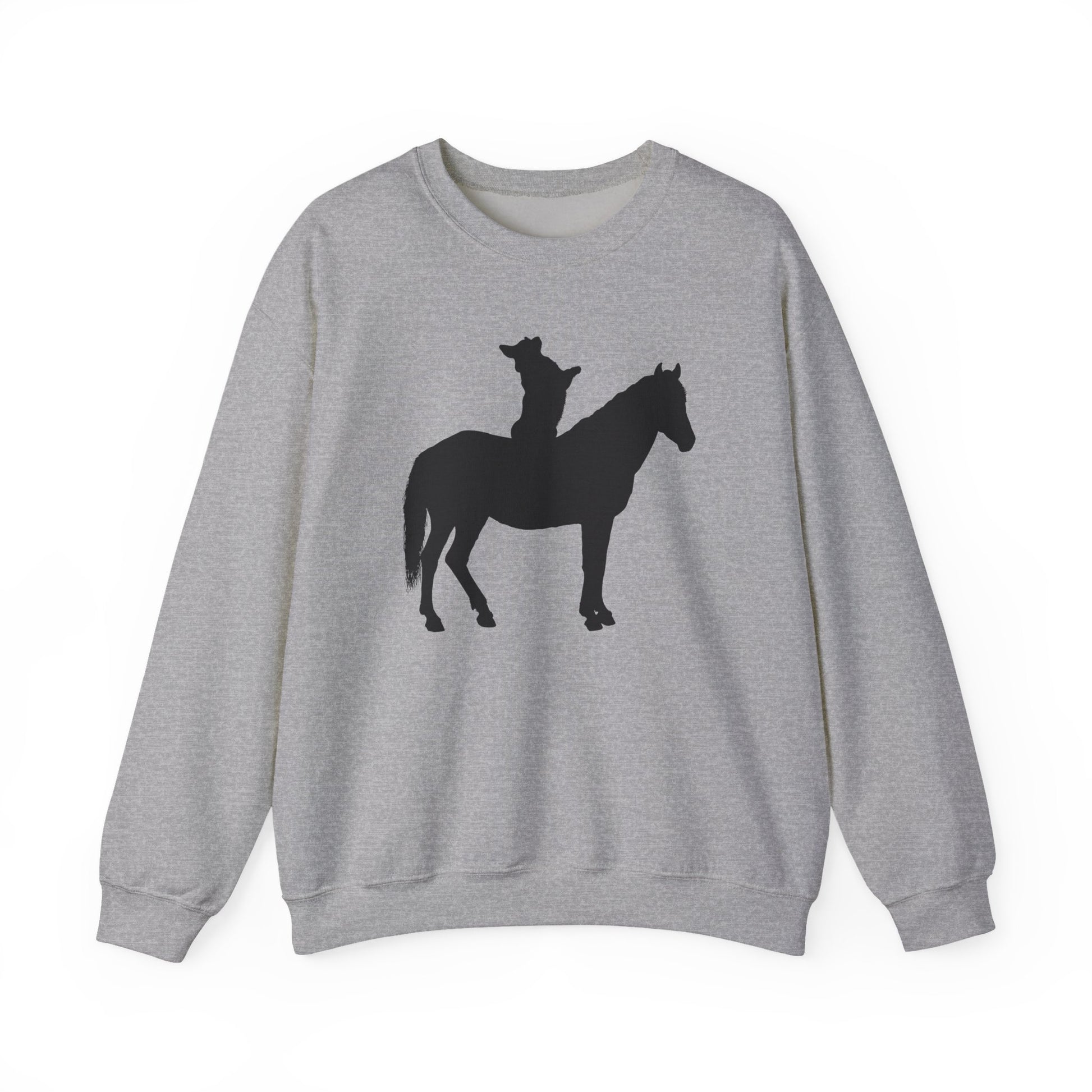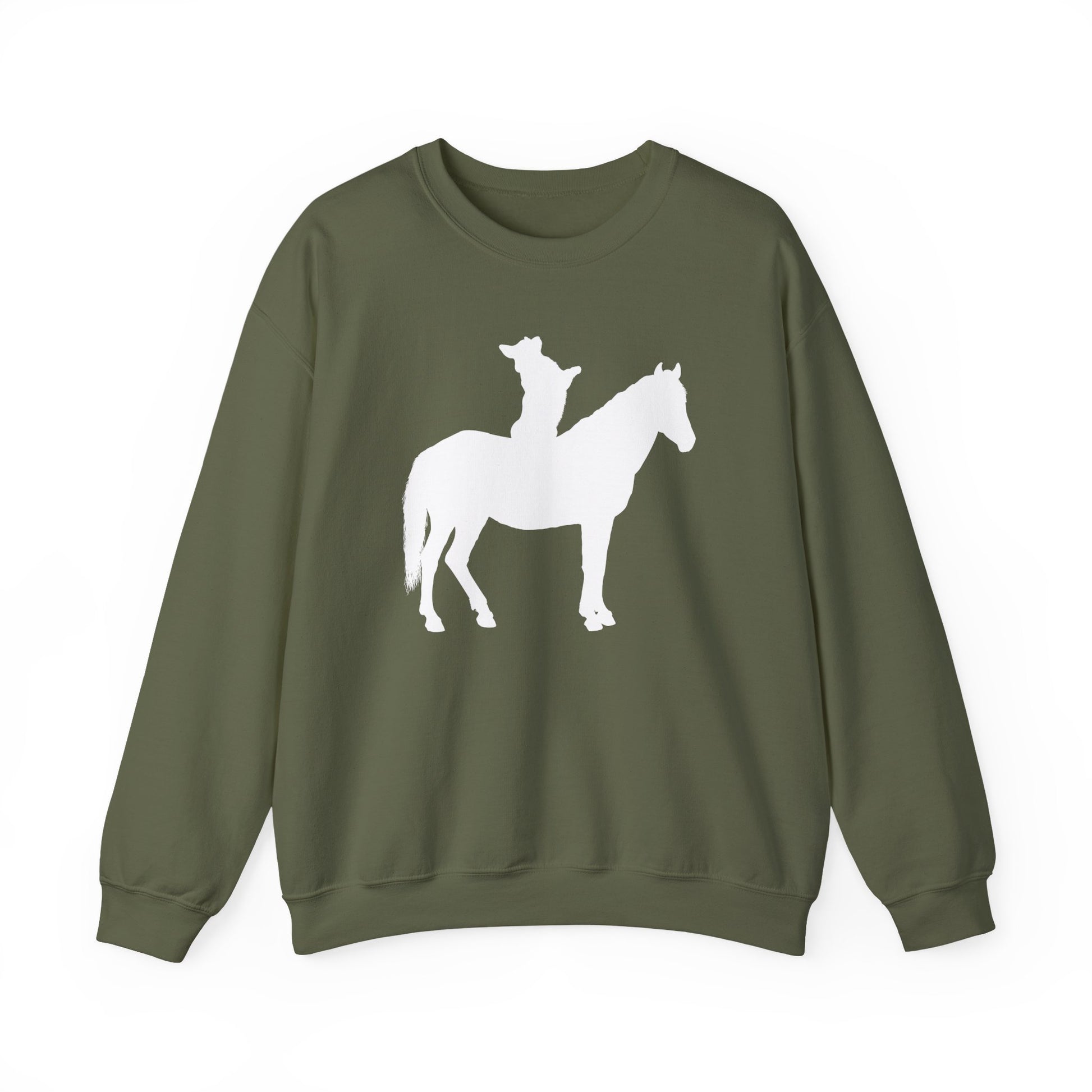 For corgi and horse lovers...Giddyup Cowboy! Explore the perfect blend of comfort and style with our exclusive sweatshirt featuring an adorable cowboy corgi riding a horse. Crafted for both dog and horse lovers, this unique and cozy sweatshirt is a must-have for those who appreciate a touch of whimsy in their wardrobe. Embrace the charm of this one-of-a-kind design and make a statement wherever you go. Shop now for a delightful combination of warmth, fashion, and canine cuteness!