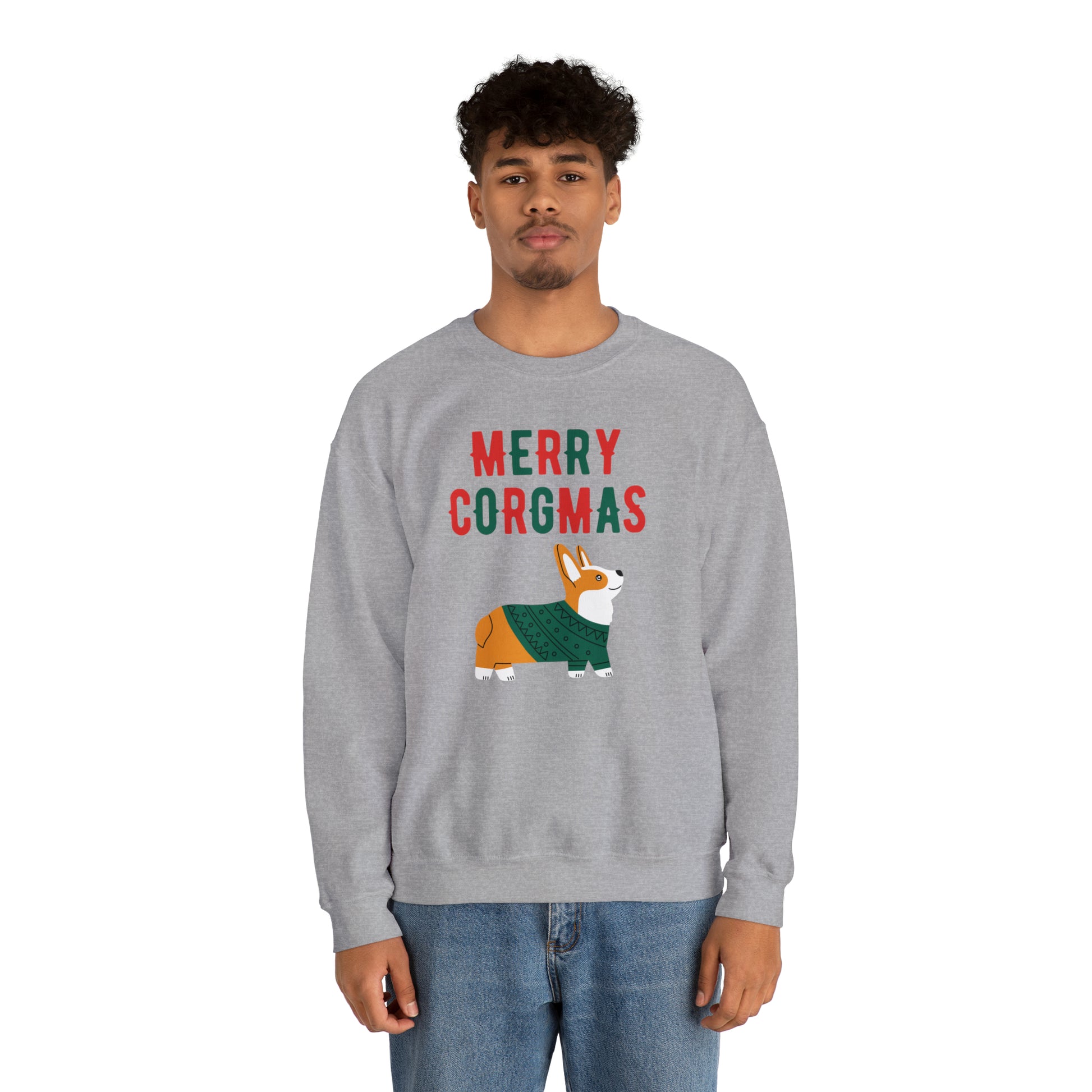 Spread holiday cheer with our hilarious "Merry Corgmas" Christmas sweatshirt! This adorable design featuring a jolly Corgi is bound to bring smiles and laughter to your festivities. It's the perfect shirt for staying stylish and warm this holiday season at all your festive parties and activities. Get ready to sleigh the fashion game with this must-have Corgi-themed sweater! Great gift for corgi enthusiasts and Christmas lovers alike, combining cute canine charm with yuletide merriment.