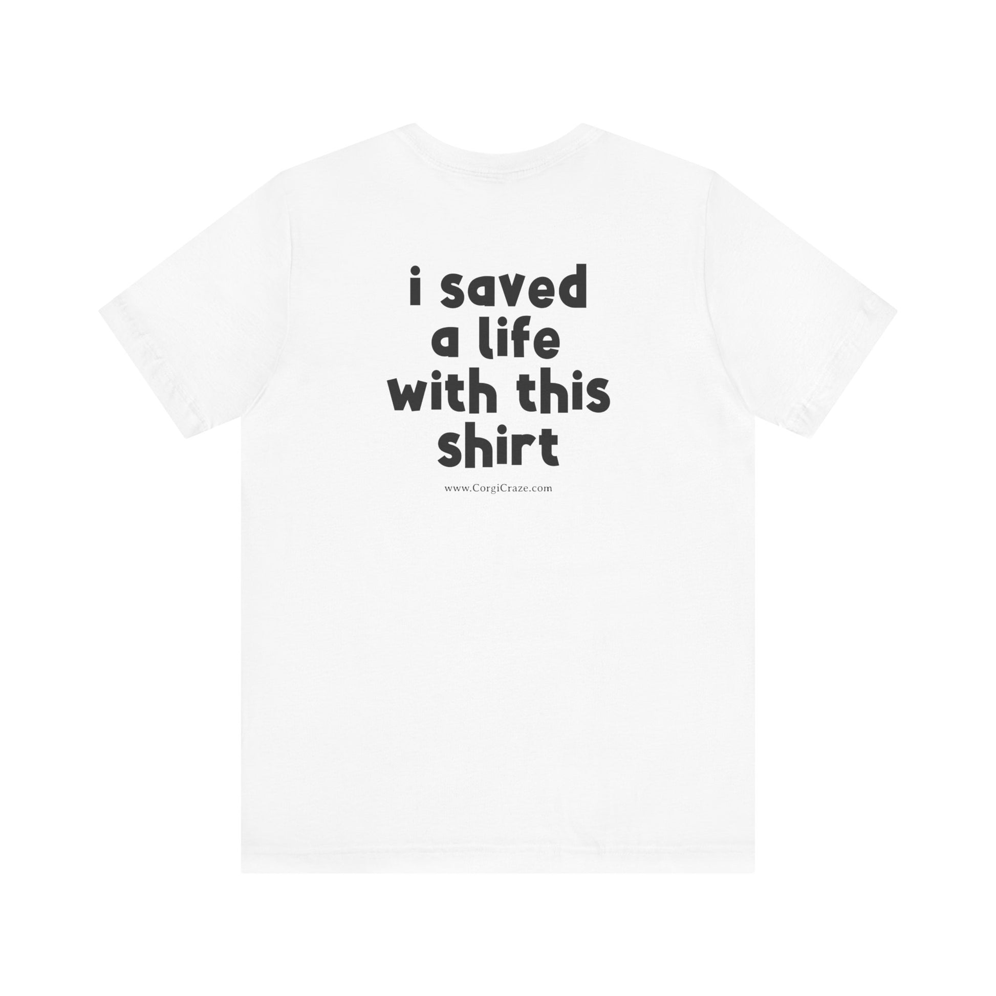 Introducing our Unisex T-shirt featuring the Corgi Craze logo (an amusing corgi hot dog) on the front and an inspiring quote on the back. Â This versatile tee is ideal for anyone who appreciates laughter and loves animals. Â By wearing this trendy shirt, you not only showcase your unique style but also contribute to saving precious lives. Â Join us in making a difference and add this delightful Corgi-themed shirt to your wardrobe today.